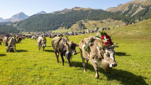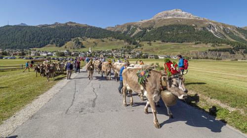 Bei der Kirche San Gian wartete auf die Wiederkäuer vor der Heimreise ein letztes Mal saftiges Oberengadiner Weidegras für diesen Sommer. Derweil sorgte der Schlittschuhclub Celerina am Grill und an der Zapfanlage für das leibliche Wohl der vielen Schaulustigen, die dem Fest zu Ehren der Vierbeiner beiwohnten. Auch der kleine Bauernmarkt und die Präsentation der alten Traktoren fanden grossen Anklang.