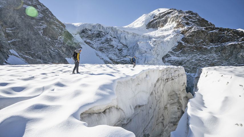 Matthias Huss in acziun l‘an passo ad imsürer il Vadret Pers sper la Diavolezza (fotografia: Keystone/Mayk Wendt).