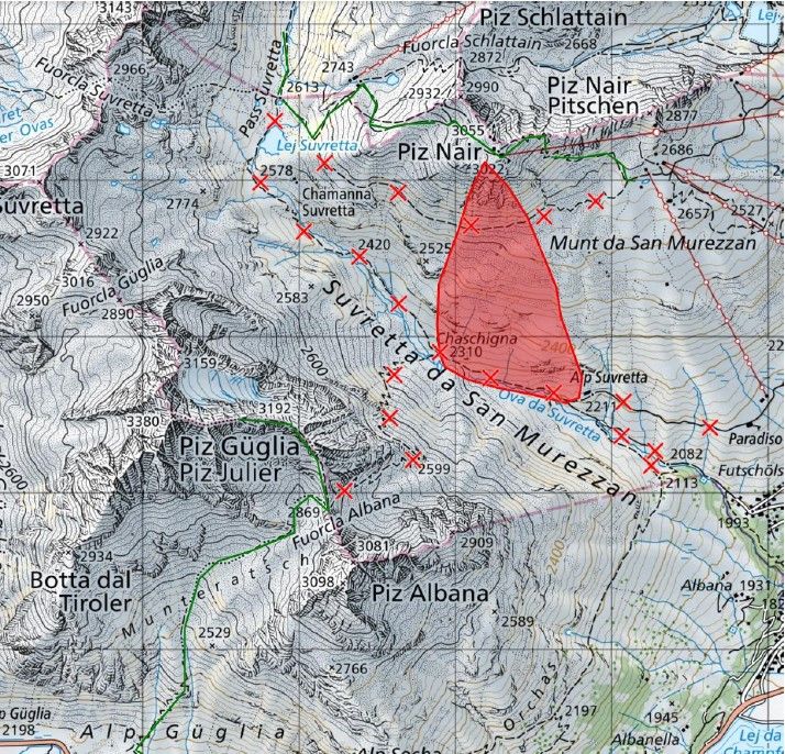 Infolge erhöhtem Steinschlagrisiko sind sämtliche Wanderwege und Bikerouten in der Val Suvretta gesperrt. Von der Sperrung ist auch die Mountainbike Route „Suvretta Loop 671“ betroffen.