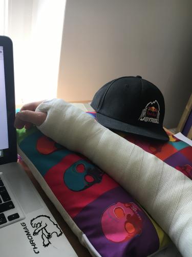 Diesen Blog schreibe ich für einmal einhändig. Wieso? Weil meine rechte Pfote bis weit über den Ellenbogen hinaus im Gips steckt. Ich habe mir bei einem Contest vor zwei Wochen Elle und Speiche recht kompliziert gebrochen – Glück im Unglück, denn in Anbetracht der Grösse des Sprunges, hätte viel mehr als nur die Pfote kaputt gehen können.