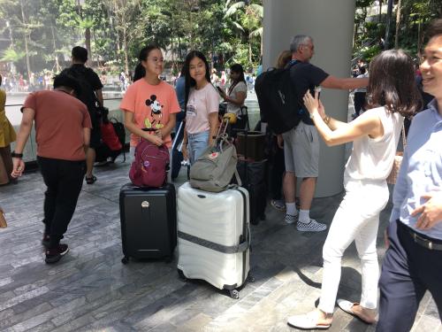 Der Ansturm auf das Juwel war noch Tage nach der offiziellen Eröffnung ungeheuerlich. Ordnungskräfte versuchten, den Besucherstrom zähmen. Touristen, die glaubten, ihre Transitzeit im Flughafen mit einem Besuch des Sturzbaches zu verkürzen, verpassten wegen den langen Warteschlangen und dem Chaos gar ihre Anschlussflüge. Das Juwel unter einer gigantischen Haube, in der im tropischen Inselstaat erfrischende 23 Grad herrscht während draussen innert Kürze das T-Shirt am Rücken klebt. Offenbar soll das Jewel dank neuster Technik zwar nicht gerade energieneutral sein, aber dennoch halbwegs vernünftig bezüglich Wasser- und Stromkonsum – sagen die Verantwortlichen. Ich sitze auf einer Bank und schaue dem Treiben fasziniert zu – den Leuten, die ihre Grosskoffer durch den Dschungel rollen, die Enkelinnen, die ihre Grossmütter im Rollstuhl möglichst nahe an den Wasserfall karren, all die Selfie-Stangen, die ausgefahren werden, um Orchideen in Makro und Grossfamilien im Gegenlicht zu knipsen. So richtig bunt wird es nachts, wenn die Kunstwelt mit violett, blau und rot bestrahlt wird. Alle paar Stunden gibt es eine Lichtshow mit Musik. Pinke Palme. Blutroter Wasserfall. Hellblaue Gummibäume. Wir Menschen sind schon eigenartige Wesen. Bauen uns romantische Natur, nachdem wir die ursprüngliche verschmutzt und kaputt gemacht haben, bestrahlen die Kunstwelt mit rot und blau, statt uns am natürlichen Grün satt zusehen. Und zum guten Schluss beschallen wir das ganze mit Beats vom Synthesizern und reduzieren das Rauschen des Wasserfalles auf WHO-normiertes, medizinisch unbedenkliches Niveau. Da wirkt der ohrenbetäubender Lärm von den Flugzeuge auf dem nahen Flugfeld fast natürlicher.