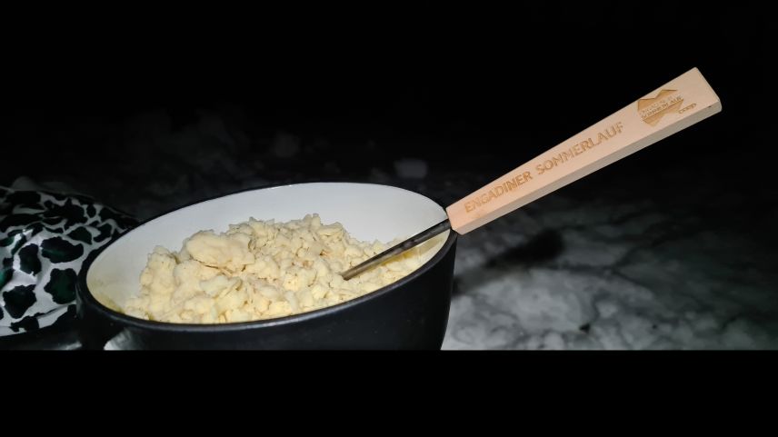 Zugegebenermassen muss ich sagen, dass ich bei dem Titel selber etwas schmunzeln muss. Ein Fondue als Sport zu instrumentalisieren ist jetzt vielleicht sehr weit hergeholt, oder? Oder? Nein, eigentlich nicht. Wenn man denn das Fondue nicht auf herkömmliche Weise zubereitet und verspeist. Wenn man nicht einfach ein Fertigprodukt in der warmen Stube verspeist. Ich lernte nämlich eines Tages etwas über die wahrhafte und einzigartige Art und Weise der Zubereitung des wahren Fondue kennen. Und seitdem geht Fondue essen bei mir nicht mehr so schnell und einfach. Für die sportliche Variante werfe man folgende Abläufe in einen Topf: 1. Man kaufe den Käse an der Käsetheke des Käseladens des Vertrauens in grossen Stücken. Am besten nehme man eine Mischung aus Vacherin fribourgeois und Gruyère. Die Kunst ist dann, das individuelle Geschmacksgeheimnis durch die Wahl der richtigen Anteile der Käsesorten zu bestimmen und nicht zu verraten! Und dann beginnt auch schon das Training: Der Käse muss grob gerieben werden und das macht man am besten mit eigener Muskelkraft! Da kann man schon mal ins Schwitzen geraten. Vielleicht wärmt man sich mit Schulterkreisen oder Hampelmann vorher noch schnell auf! Dann wird ein Korb gepackt samt Käsemischung, Weisswein, Caquelon, Gaskocher, Streichhölzer, Gabeln, Brot, Kartoffeln und einer Schaufel. 2. Der Sport beginnt: man wandere mit Sack und Pack und einer Handvoll Freunde zur nächstgelegenen oder fernentlegensten Feuerstelle oder an irgendeinen Ort, an dem man gerne is(s)t. Bestenfalls liegen Sitzbank und Tisch unter ein meterhohen Schneedecke verborgen, so dass diese (wiederum mit Muskelkraft) erst richtig freigeschaufelt werden müssen. 3. Stufe 3: Nach dem Schaufeln beginnt das Rühren. Zuerst wird aber die Innenseite des Caquelons mit Knoblauch ausgerieben und dann mit einer geheimen Menge Weisswein aufgewärmt. Dann kommt die Käsemischung ins Caquelon und wird auf dem Gaskocher unter ständigem Rühren erwärmt, bis es keine Klumpen mehr gibt. Sollten die Muskeln nun langsam zu schwächeln beginnen oder die Kehle vom Schuften trocken sein, so darf gerne der Weisswein zur Hydrierung genutzt werden. 4. Das grosse Finale: Zur Belohnung Kartoffel oder Brot auf die Gabel stecken und geniessen! Wer jetzt immer noch nicht davon überzeugt ist, dass Fondueessen der neueste Fitnesstrend ist, der erfinde einfach eine Regel, wenn das Brot von der Gabel rutscht und im Käsesee untergeht. 20 Liegestütz? 20 Kniebeugen? Oder nochmals Käsereiben für eine Grossfamilie? Oder einfach das beigefügte Lied singen! Guten Appetit! Mein Musiktipp: Le ranz des vaches