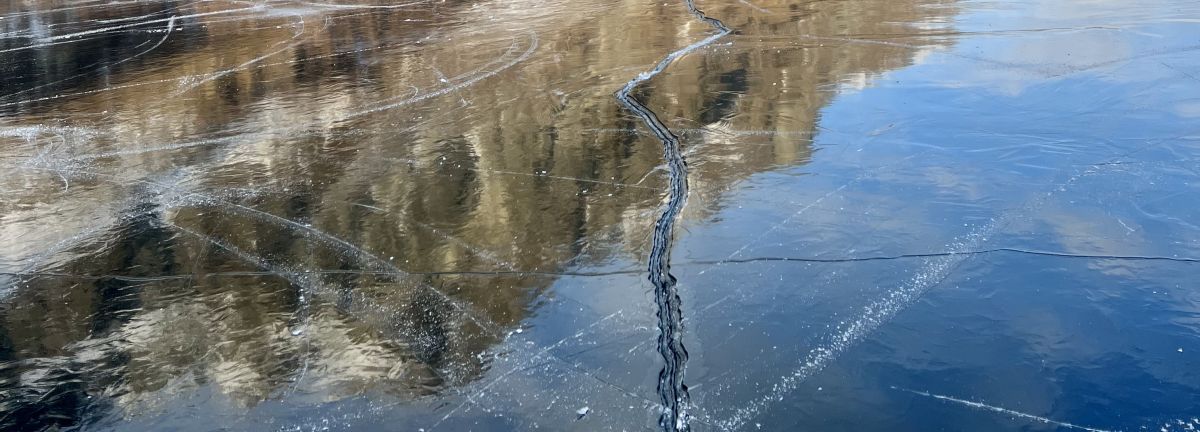Über den Silsersee gleiten Ende Jahr? Er war gefroren und schneefrei. Gleitend streckte ich die Arme aus. So fühlt sich fliegen an, dachte ich. Und ich fühlte es. Es war wie in einem Flug- und Schwebetraum: echt. Reales Abheben. Ein Wesen der Luft und des Luftigen werden. Leicht wie ein Spatz. Zwischen Himmel und Erde. Ohne Bekenntnisse. Ohne Rechtfertigung. In der flirrenden Musik des Sees, der sich zum Ufer streckt und an sich selbst zieht, rundum und quer hindurch. Er lebt. Nicht nur den Rissen entlang, die wie Seufzer sind. Er lebt in den hingestreuten und gestaffelten Eisblumen und in den schwarzen Aderungen, die sich abwechseln mit den zuckrigen Spuren der Kufen. Ab und zu eine Spitzendecke, ausgebreitet wie ein kleines Gedeck auf dem riesigen Spiegel aus Obsidian: Vulkanglas, das aus der Tiefe aufgestiegen ist, über Nacht. Erdgeschichte statt Geschichte, die sich auflöste in meinem Flug. Er endete, als ich einem Schlittschuhläufer ausweichen musste.
