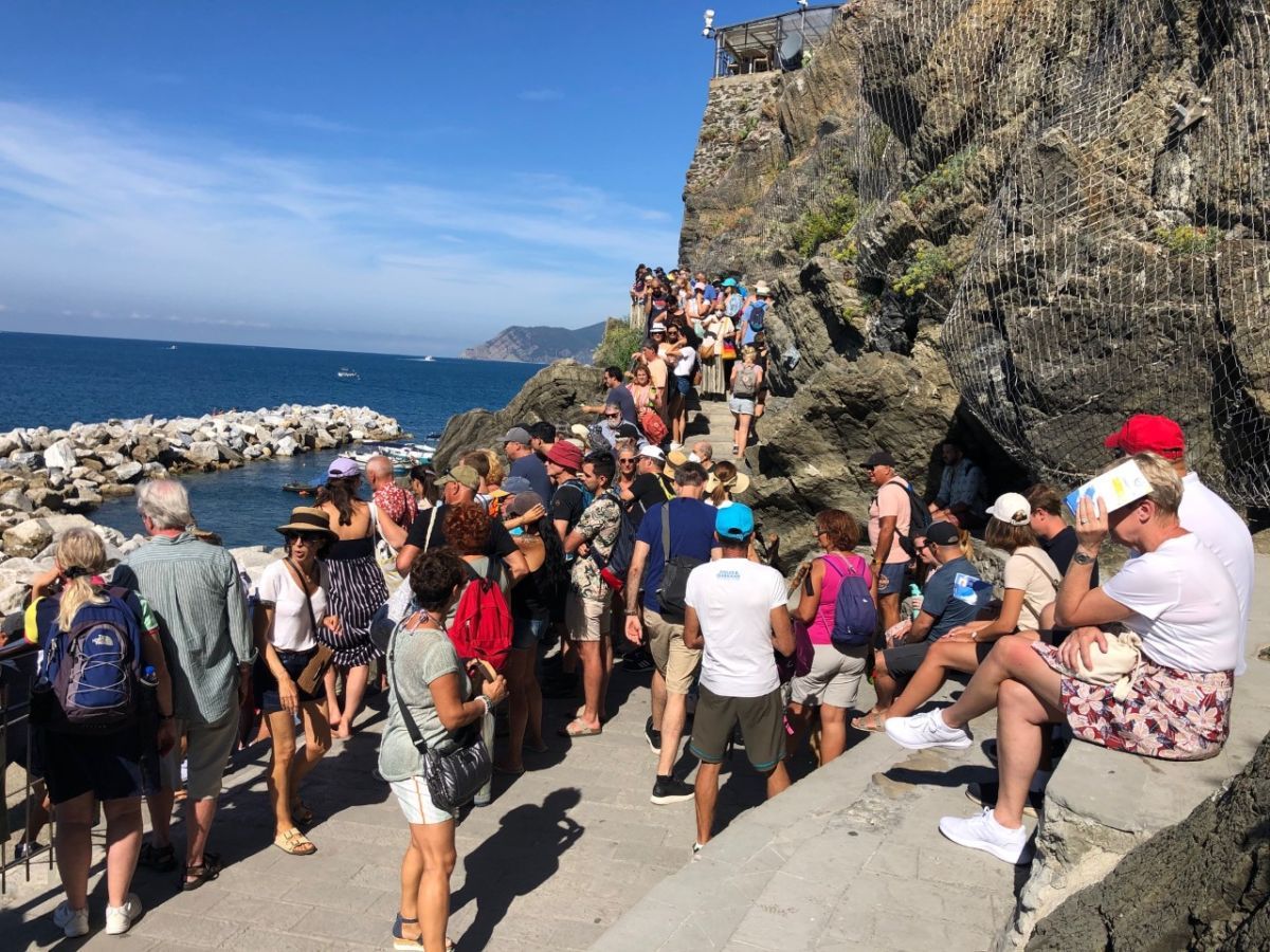 Ein Jahr ohne Meer ist ein verlorenes Jahr für mich. Deshalb plane ich zumindest einmal jährlich einen Ausflug an ein salzhaltiges Gewässer. Und von Sils aus ist nicht etwa die französische Atlantikküste am schnellsten zu erreichen, sondern der Golf von Genua. Da aber das Baden im Hafen der ligurischen Grossstadt nicht ratsam ist, zieht es mich ostwärts nach Levanto, einem Hotspot fürs Wellenreiten. Das kleine Städtchen liegt zehn Zugminuten entfernt von den Cinque Terre, den malerischen Dörfern an der Steilküste der Riviera di Levante. Monterosso, Vernazza, Corniglia, Manarola, Riomaggiore (und auch Portofino) habe ich erstmals vor vierzig Jahren als Studentin erkundet. Wir wanderten damals auf halber Höhe durch Olivenhaine und Rebberge von Dorf zu Dorf, nahmen zwischendurch ein erfrischendes Bad in kleinen Buchten, tauchten von Klippen in eines der saubersten Meere von ganz Italien ein. Das alles kann man auch heute noch tun. Doch ohne Geduld und Geld geht nichts mehr. Spätestens seit diese Region zum Nationalpark und zum Unesco-Welterbe geadelt wurde, hat der Massentourismus Einzug gehalten. Wer heute auf der Via dell’amore wandeln und die spektakuläre Aussicht geniessen will, muss für eine Familie fünfzig Euro hinblättern. Das Schlendern durch die Gassen der Fischerdörfchen ist ohne direkten Körperkontakt zu anderen Touristen nicht mehr möglich – auch ausserhalb der touristischen Hochsaison vor und nach Ferragosto. Nahverkehrszüge und Kursschiffe sind hoffnungslos überfüllt. Wie stellte doch der Autor Hans Magnus Enzensberger schon Ende der 1950er-Jahre fest? «Der Tourist zerstört, was er sucht, indem er es findet». Die Cinque Terre sind ein trauriges Lehrbeispiel für den Overtourism. Ich werde sie künftig meiden und zwischendurch zum Roman «Schöne Ruinen» des Pulitzerpreisautors Jess Walter greifen. Er soll mitschuldig sein am weltweiten «Erfolg» der Cinque Terre.