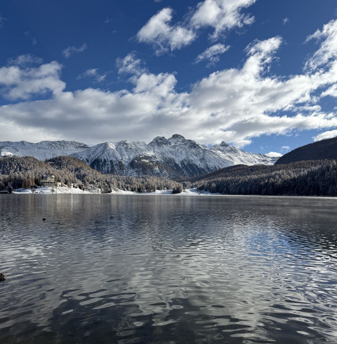 Nun, an einem Dienstagmorgen war ich für eine Reportage über Filmaufnahmen im Hotel Waldhaus in Richtung Sils unterwegs. Um Punkt 9.45 Uhr sei Drehstart, wies mich die Regisseurin an. Kein Problem, ich bin ein pünktlicher Mensch. An diesem Morgen war ich sogar zu früh dran und absolut entzückt von der Landschaft, zumal es über Nacht geschneit hatte: blauer Himmel und weiss gepuderte, gelbe Lärchen. Beim St. Moritzersee stieg Dampf von der Wasseroberfläche auf. Traumhaft! Ich hielt also spontan an, um «noch ganz schnell» ein Foto für unseren Social Media Account zu machen. Beim Ufer angekommen, kramte ich das Smartphone aus der Jackentasche, machte noch eine kleinen Schritt vorwärts, um den idealen Bildausschnitt zu wählen ... und schon befand ich mich bis zur Hüfte im kalten Wasser. Das Handy lag auf dem Seegrund, aber immerhin in Griffweite.
