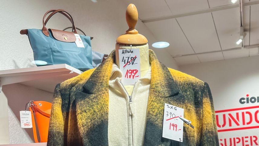 Gesagt, getan. Der Mantel ist tatsächlich ein schon fast unanständiges Schnäppchen, von satten 790 auf noch schlappe 199 Franken heruntergeschrieben. Differenz: 591 Franken. Ob ihr der Mantel trotzdem gefallen würde? Sie kommt hinzu, schaut und winkt ab. Na ja, ein Versuch war’s wert.