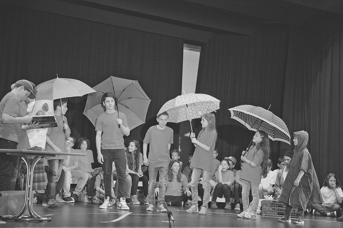 Im Theater ging es um eine Schulklasse, welche auf der Suche nach einem gesunden Kochrezept ist, und dafür in Europa unterwegs ist. So wurden verschiedene Sprachen wie Englisch, Portugiesisch, Französisch, Deutsch und Italienisch auf der Bühne ...