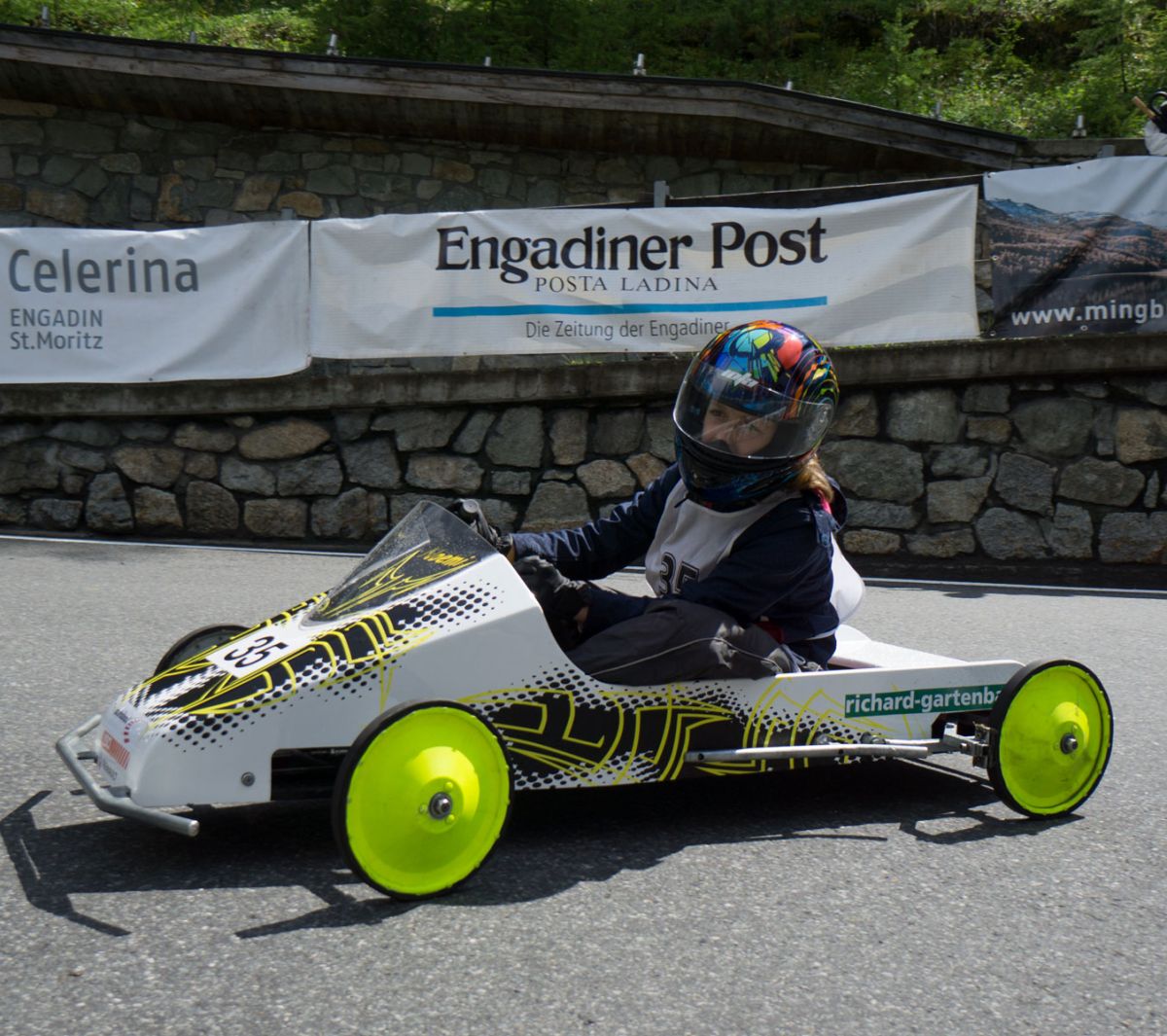 Am vergangenen Samstag fand entlang des Olympia-Bobruns zwischen St. Moritz und Celerina das 6. Seifenkistenrennen «Engadiner Derby» statt. Dabei konnten die rund 70 Kids zeigen, was sie fahrerisch drauf haben. Mehr dazu in in der EP vom 28. Juni.