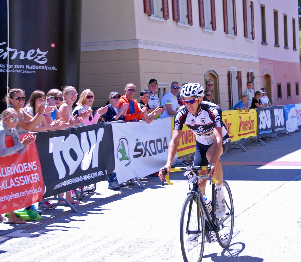 Über eine Minute betrug der Vorsprung von Matteo Badilatti aus Poschiavo in Brail nach über 200 Kilometer. Trotzdem reichte dieser Vorsprung nicht. Der Sieger der langen Strecke des Engadin Radmarathons heisst Johannes Berndl aus Deutschland. Andrea Florinett wird hervorragender Siebter.