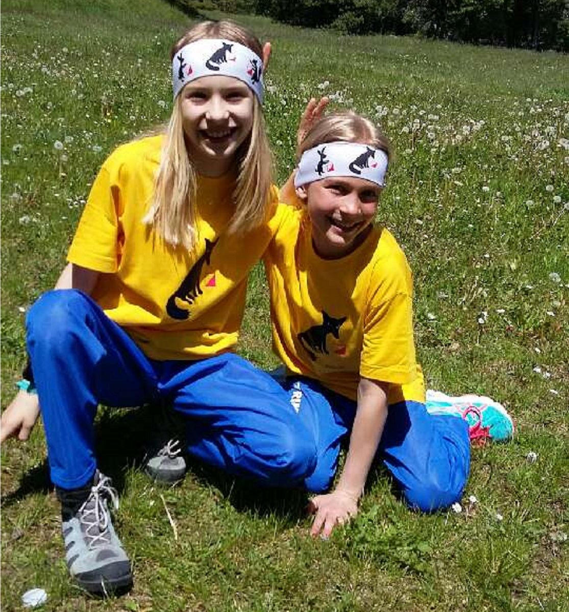 Las duos giuvnas curriduras Natalia Meyer (a schnestra) e Lea Meuwly s’allegran per las cuorsas illa regiun da Scuol (fotografia: mad).