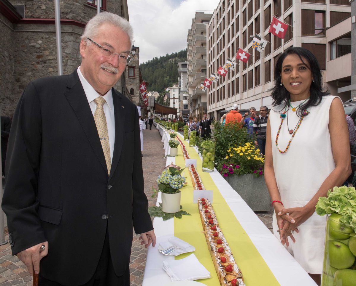 1896 wurde in St. Moritz das Badrutt's Palace eröffnet. Diesen Sommer feiert das Hotel sein 120-jähriges Bestehen. Aus diesem Grund wurde am 24. Juli um punkt 12.00 Uhr ein 120 Meter langer Apfelkuchen angeschnitten, der vor dem Hotel in der Via Serlas die Blicke der Passanten auf sich zog.