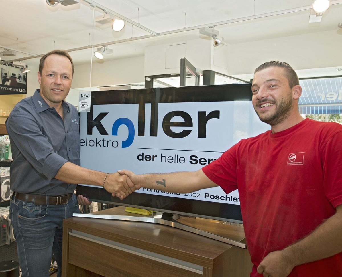 Daniel Dias Dobromirovic hat das EM-Tippspiel der EP gewonnen. Er hat von Anfang an auf Portugal als neuen Fussball-Europameister gesetzt. Vergangene Woche konnte er als Engadiner Tippkönig seinen neuen Fernseher von Samuel Schäfli der Firma Elektro Koller in St. Moritz in Empfang nehmen.