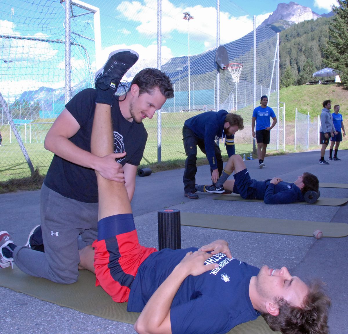 Arno Galmarini aus Ardez (links) ist für die Fitness der Athleten der ZSC Lions verantwortlich (Foto: Nicolo Bass).