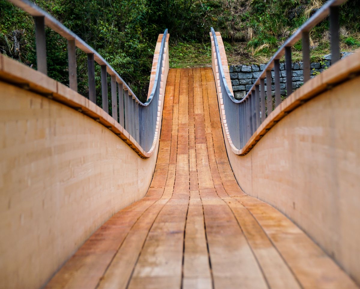 Blick auf die neue «Güstizia»-Fussgängerbrücke zwischen Zernez und Susch. Foto: Jon Duschletta