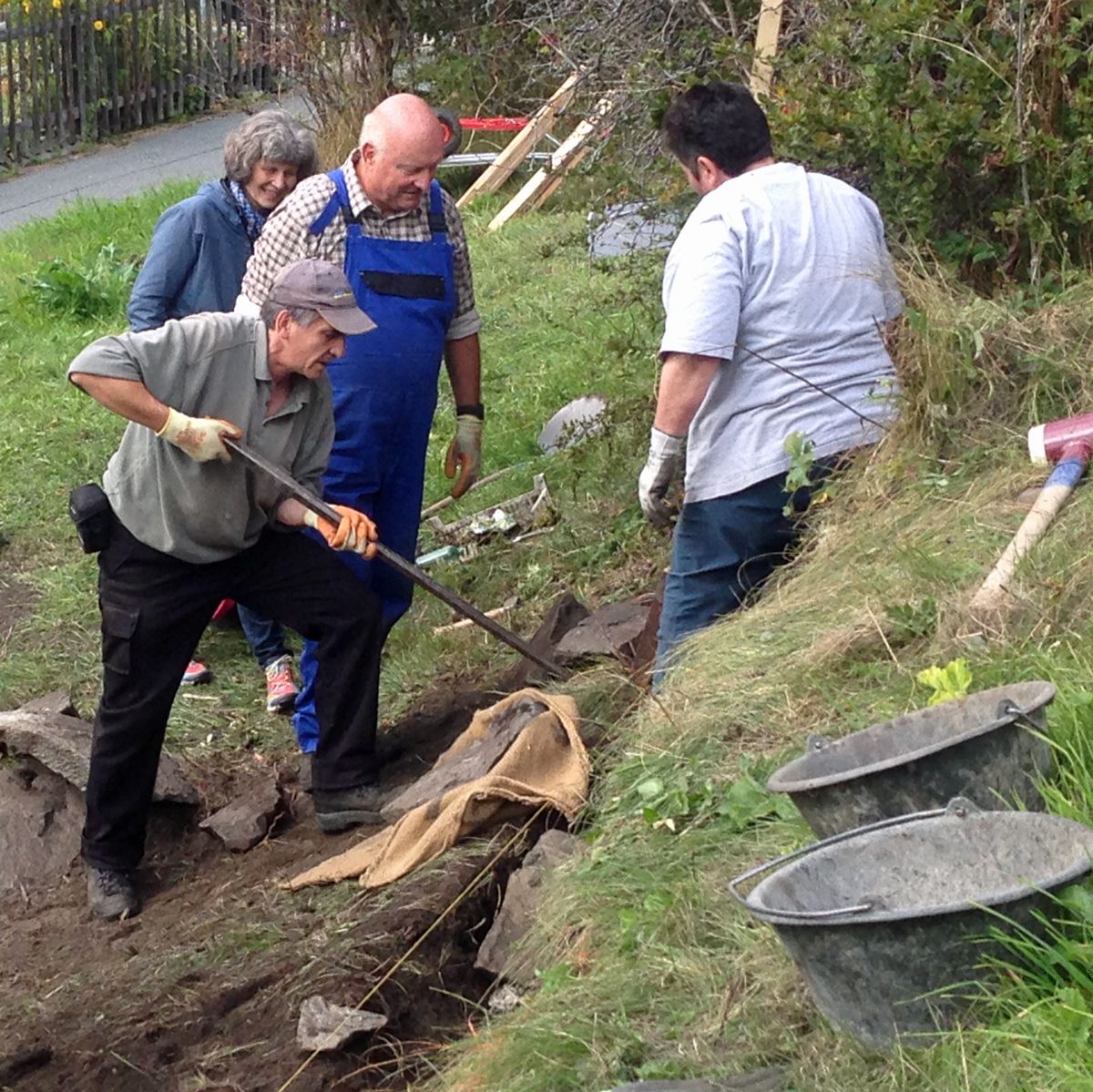 Cun forzas unidas vain missa al dret lö la crappa pel mür sech (fotografia: Annatina Filli).
