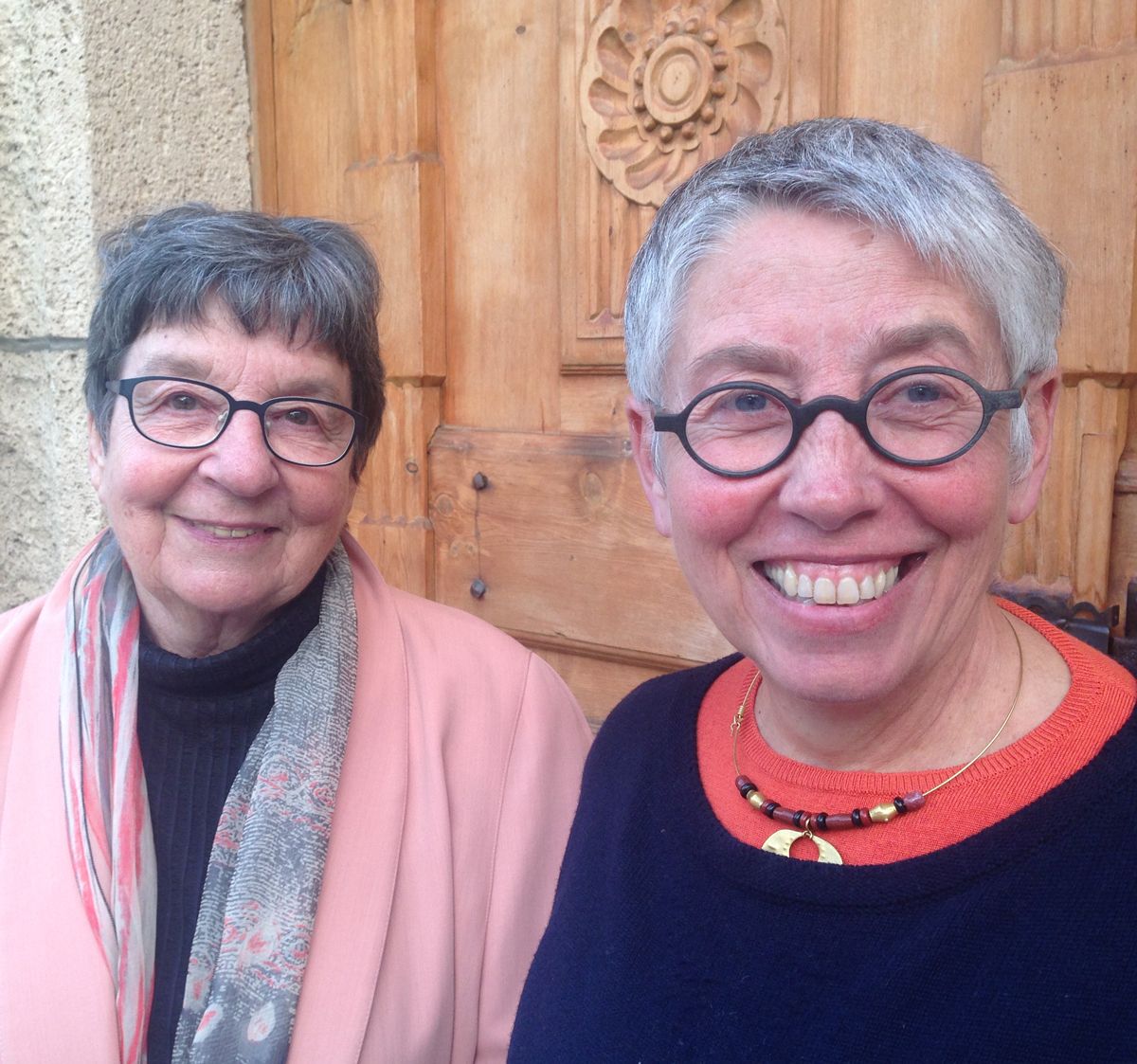 Las organistas Leta Mosca (a schnestra) e Annerös Hulliger s’han inscuntradas a Sent (fotografia: Annatina Filli).