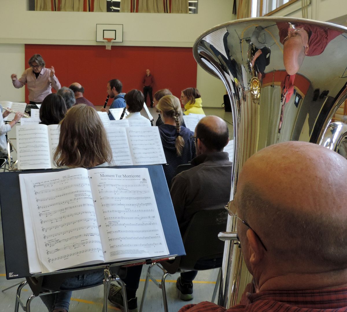 Concentradamaing vain exercità pel concert da dumengia i’l Rondo a Puntraschigna (fotografia: Nicolo Bass).