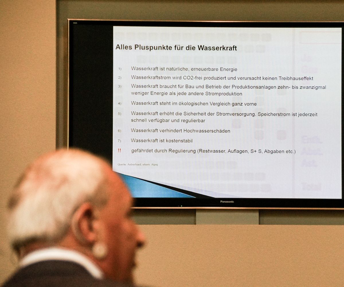 Der ehemalige Axpo-VR-Präsident Robert Lombardini listete unter anderem die Vorzüge der Wasserkraft auf. Foto: Jon Duschletta