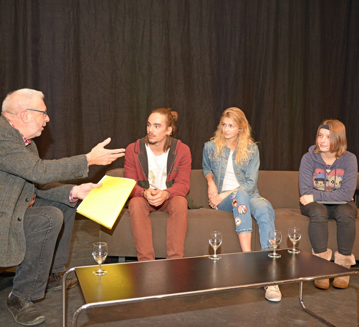 Il moderatur Chasper Pult (da schnestra) in discussiun cun Francisco Cortez, Carla Ganzoni e Lina Camenisch (fotografia: Nicolas Bachmann).