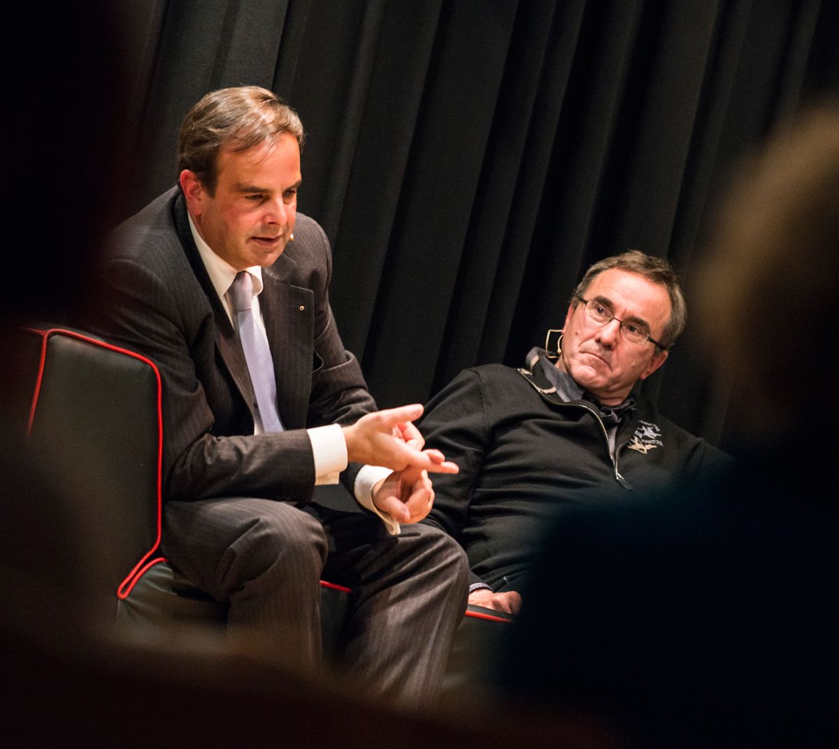 Nationalrat Gerhard Pfister und Olympiapromotor Andreas Wieland haben an der Swissness-Podiumsdiskussion am Hochalpinen Institut Ftan teilgenommen (Foto: Mayk Wendt).