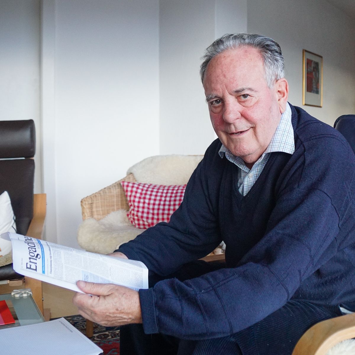 Jon Manatschal ho do aunz 20 ans ün telefon al editur Walter Urs Gammeter ed intimo a quel da piglier per mauns il futur da la pressa rumauntscha in Engiadina (fotografia: Jon Duschletta).