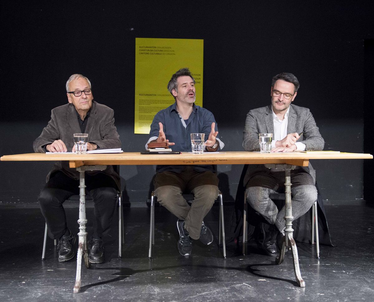 Fordern eine Änderung der Bündner Kulturpolitik (von links): Andreas Leisinger, Nikolaus Schmid und Giovanni Netzer. Foto: Marco Hartmann