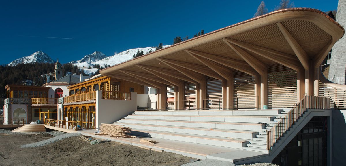 Dank dem sorgfältigen Umgang mit der alten Substanz blieb der Mix aus Jugend- und Heimatstil beim Eispavillon beim Hotel Kulm in St.Moritz erhalten. Das Gebäude strahlt auch nach der Sanierung viel Charme aus. Mehr dazu in der EP/PL von Samstag, 31. Dezember.