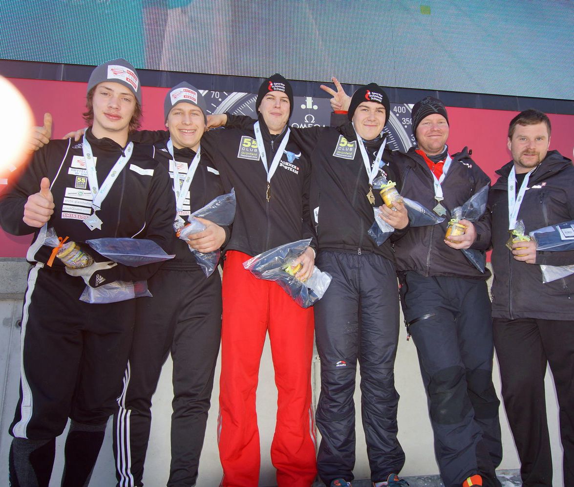 Der Engadiner Riet Graf war am Cuprennen Olympia Bob Run St. Moritz Celerina erneut erfolgreich. Team Rohner und das Bündner Team Schneider lieferten sich ein spannendes Rennen. Am Schluss gewwann Team Rohner. Foto: Olympia Bob Run St. Moritz-Celerina