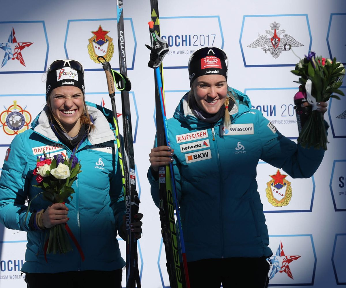 Alina Meyer und Fabiana Wieser haben in Sotchi bei den «Winter Military World Games» den 2. Platz erreicht. Foto: Sochi2017
