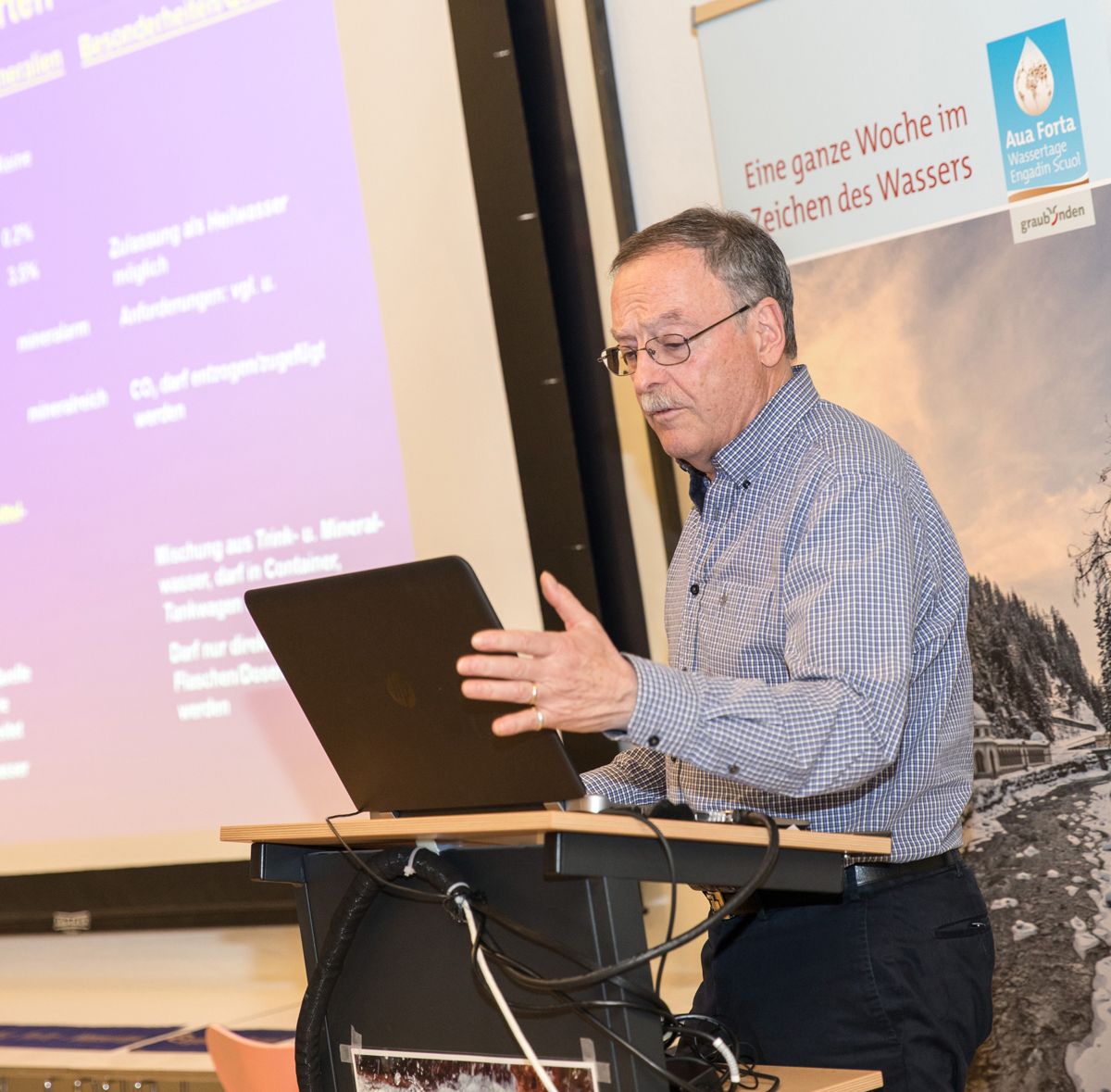 Zum Auftakt der 5. Wassertage «Aua Forta» referierte Christian Casanova über die Wirkung der Heilquellen im Unter‧engadin (Foto: Dominik Täuber).