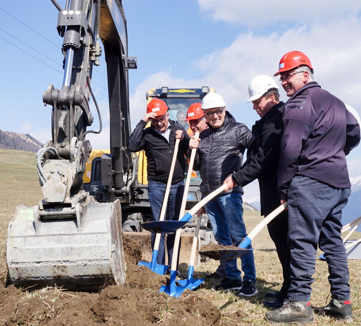 «Palladas» mit grosser Tragweite für die Region. V.l.n.r: Christian Fanzun, Gemeindepräsident von Scuol, Gian Fadri Largiadèr, Gemeindepräsident von S-chanf, Not Carl, Mitinitiant mia Engiadina, Michael Roth, Direktor EKW AG und Emil Müller, Gemeindepräsi