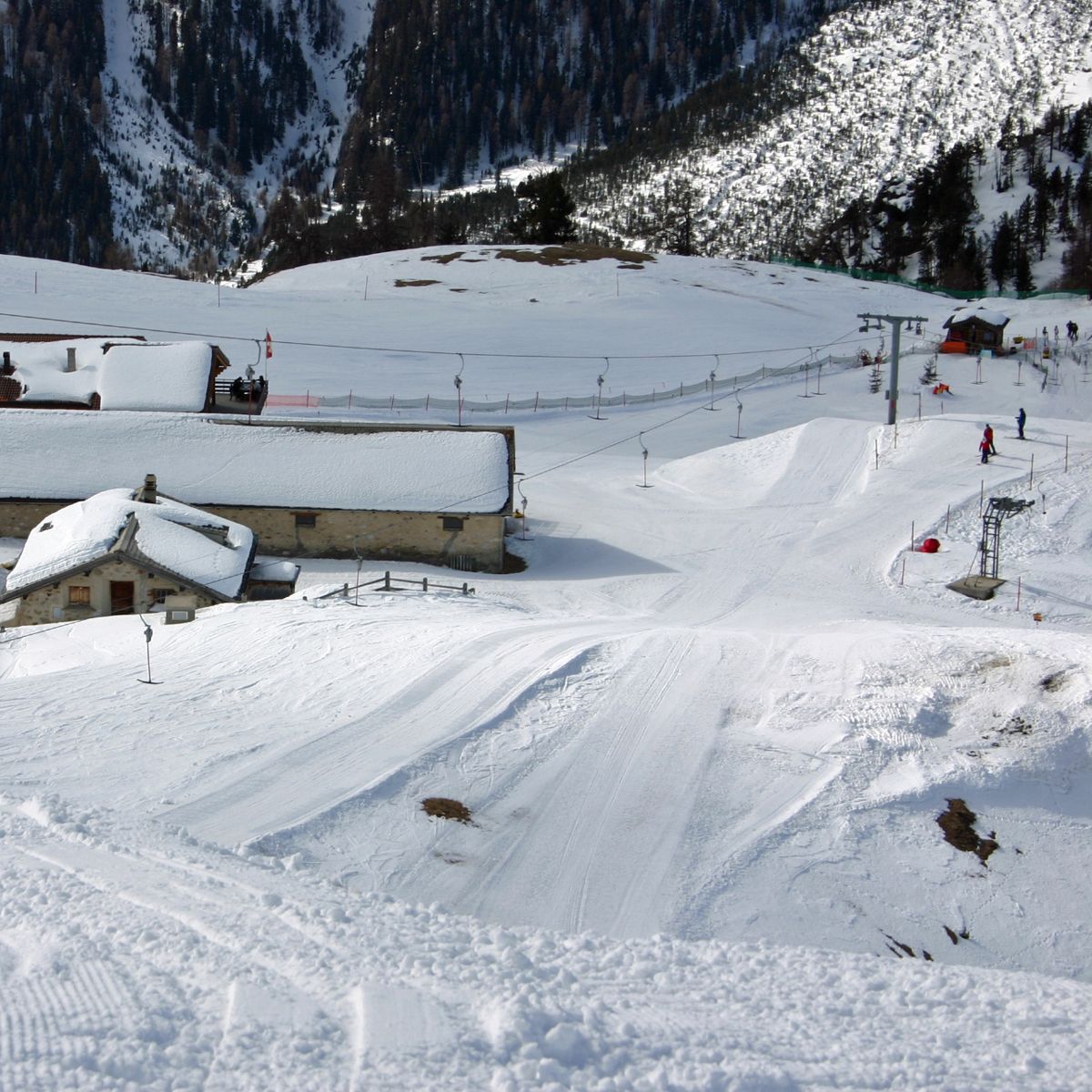 Causa la paca naiv han ils respunsabels stuvü serrar il territori da skis Minschuns in Val Müstair fingià avant Pasqua (fotografia: mad).