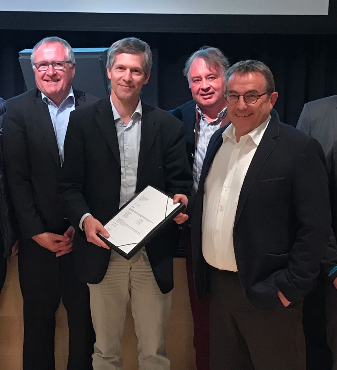 Spital-CEO Heinz Schneider, Rudolf Leuthold, Chef Gesundheitsamt und die Gemeindepräsidenten Martin Aebli und Sigi Asprion (von links).