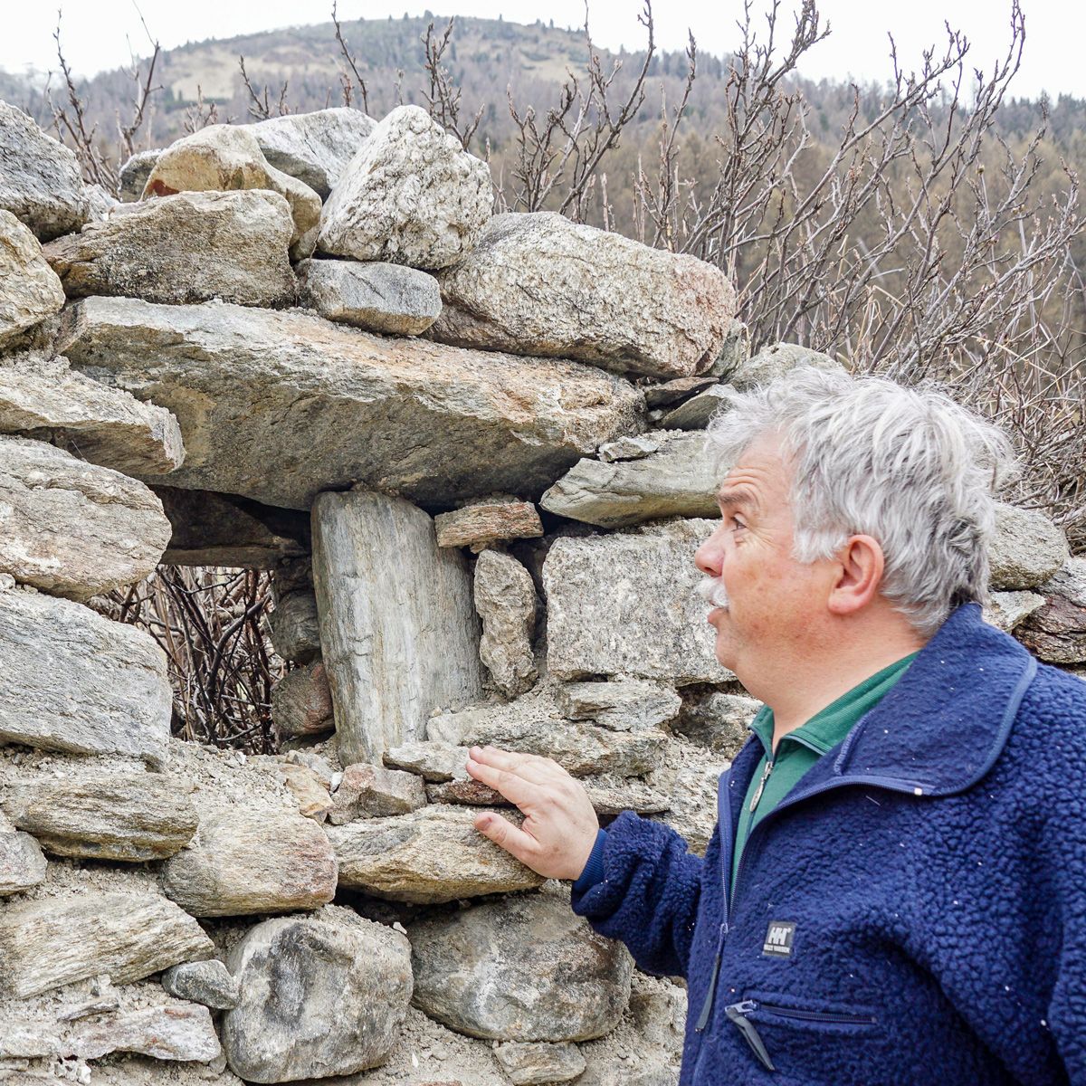 Steivan Gaudenz da Zernez dà ün tschüt illa ruina d’ün anteriur stabilimaint a Chaflurin dasper il bain da Prazet. In quist existivan da plü bod 17 stabilimaints (fotografia: Jon Duschletta).