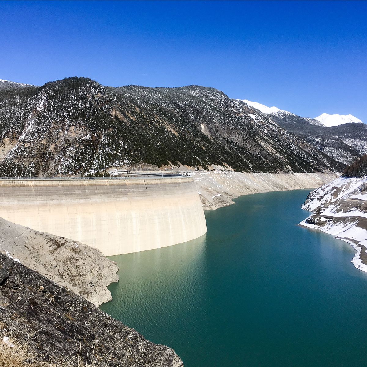 Stauanlage Punt dal Gall mit dem Lago di Livigno. Foto: Jon Duschletta