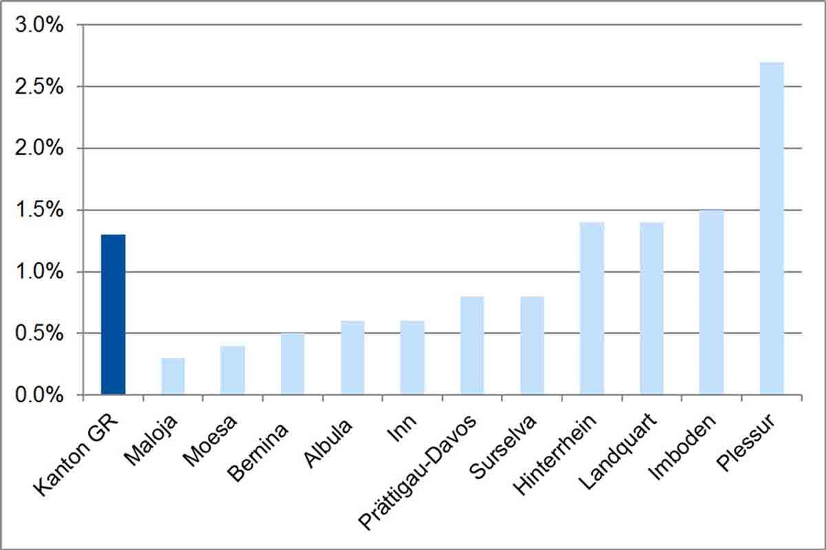 Im Jahr 2015 benötigen im Kanton Graubünden 1,3 Prozent der Bevölkerung Sozialhilfe. Diese Quote ist um 0,1 Prozentpunkte höher als im Vorjahr. Pro Fall werden durchschnittlich 1,6 Personen mit Sozialhilfe unterstützt. Die Sozialhilfequote ...