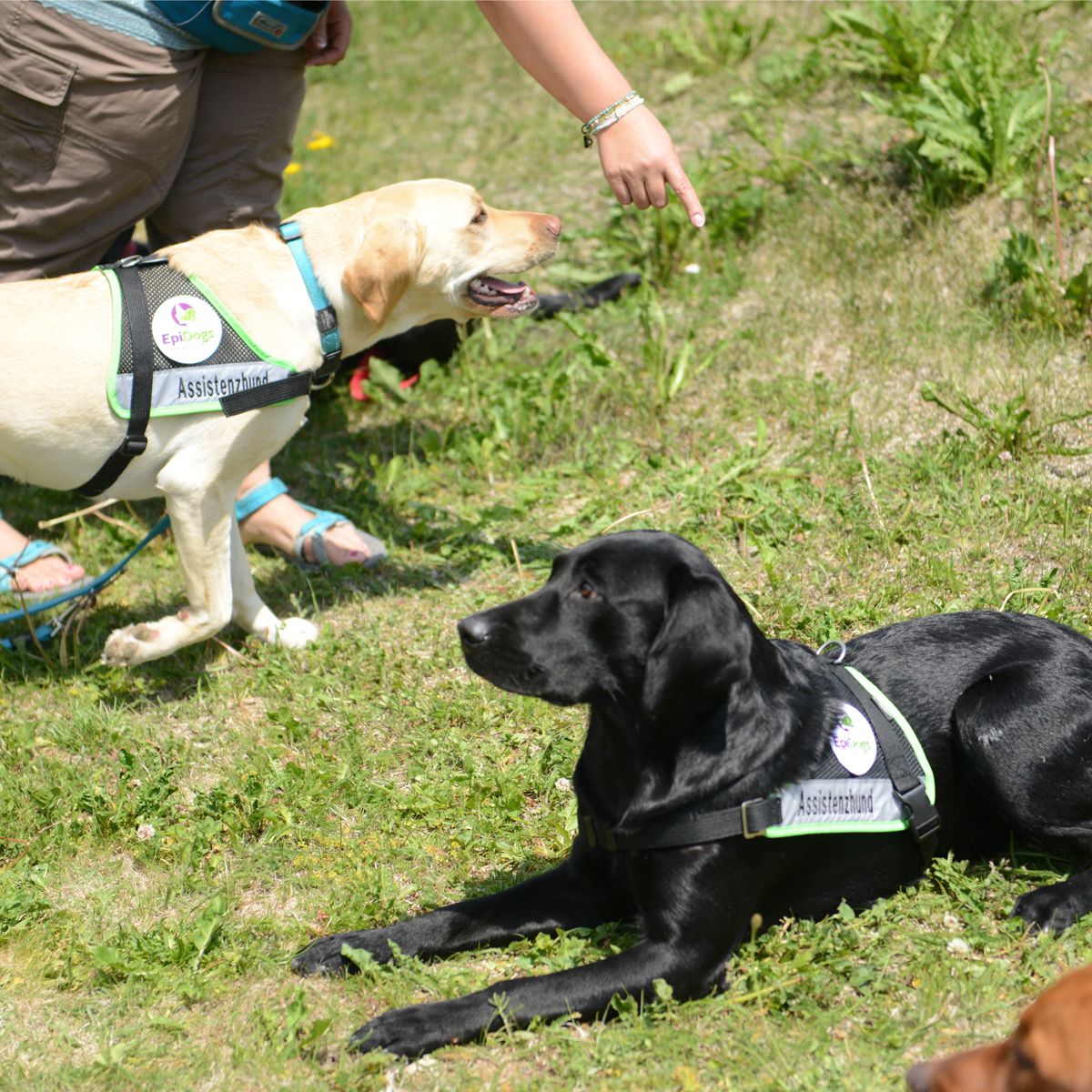 Die Epilepsie-Begleithunde tragen bei der Arbeit eine Weste. Foto: Luana Franziscus