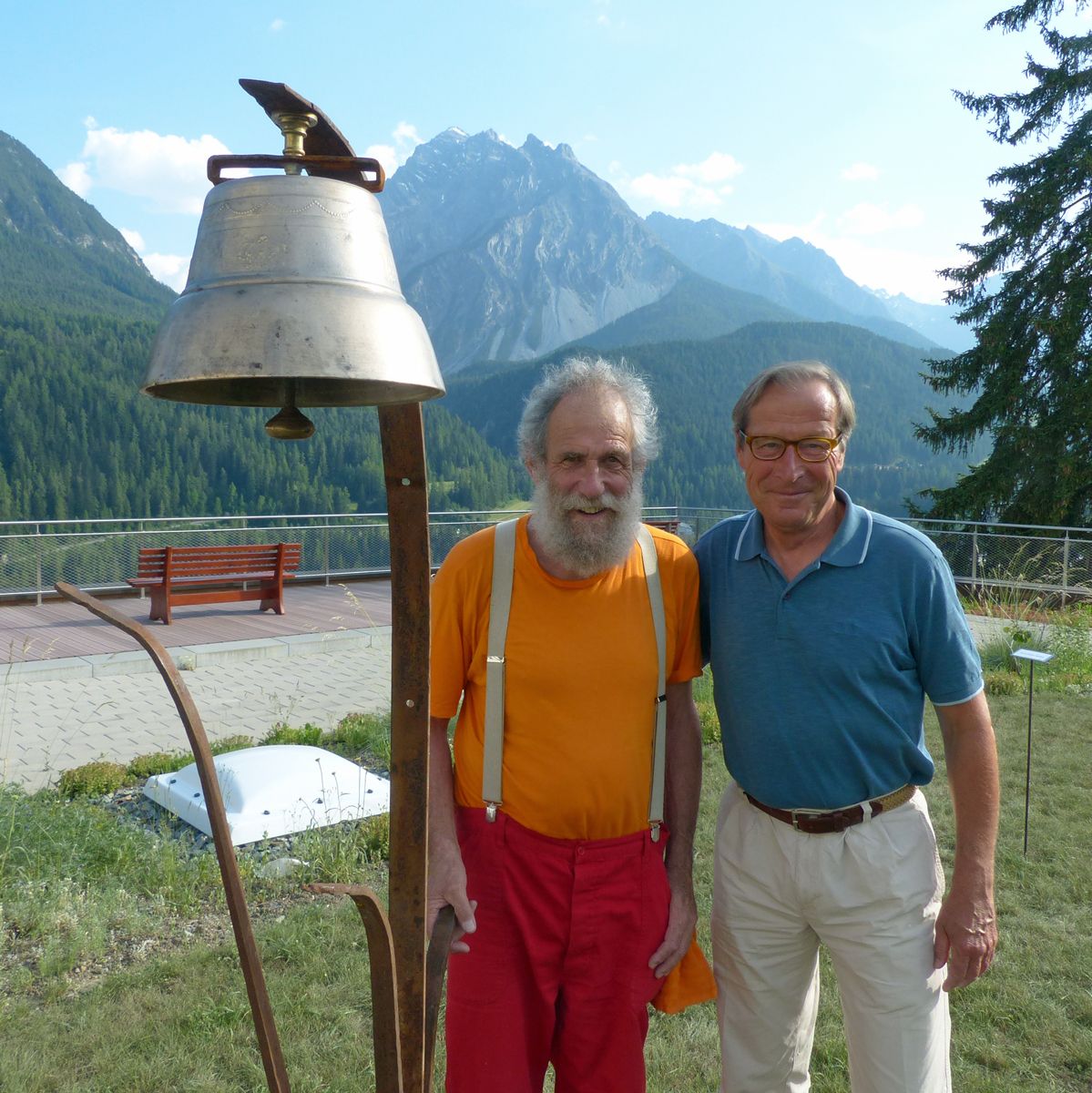 Ils amis Alesch Vital e Hans-Peter Sinniger sper il «sain da la pasch» i’l üert da sandà (fotografia: Flurin Andry).