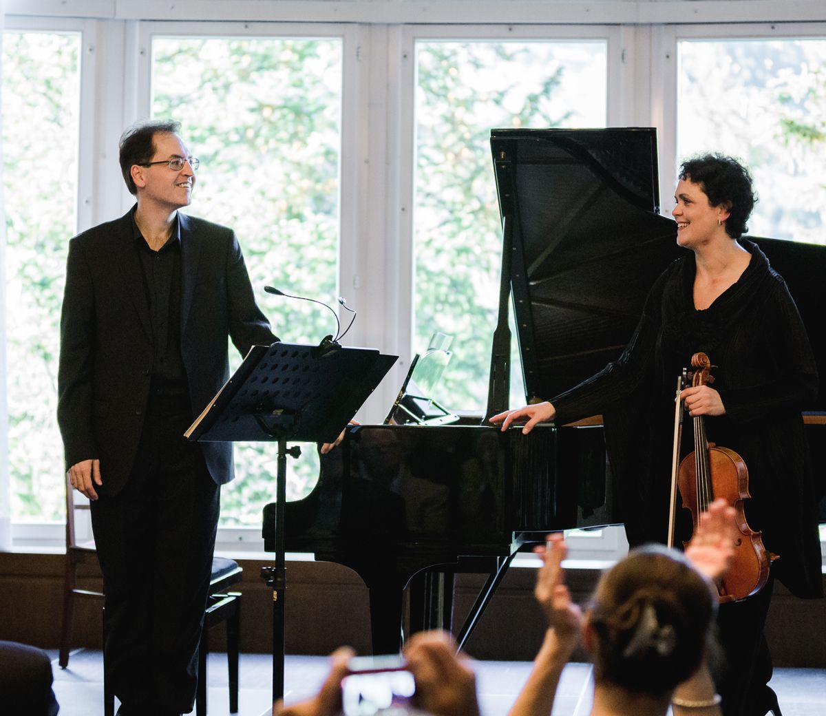 Kamilla Schatz gelang es wiederum, ein interessantes Programm zwischen Barock und moderner Musik mit zwei Uraufführungen zu gestalten. Tabea Zimmermann und Dénes Várjon begeisterten am Eröffnungskonzert Resonanzen in Sils.