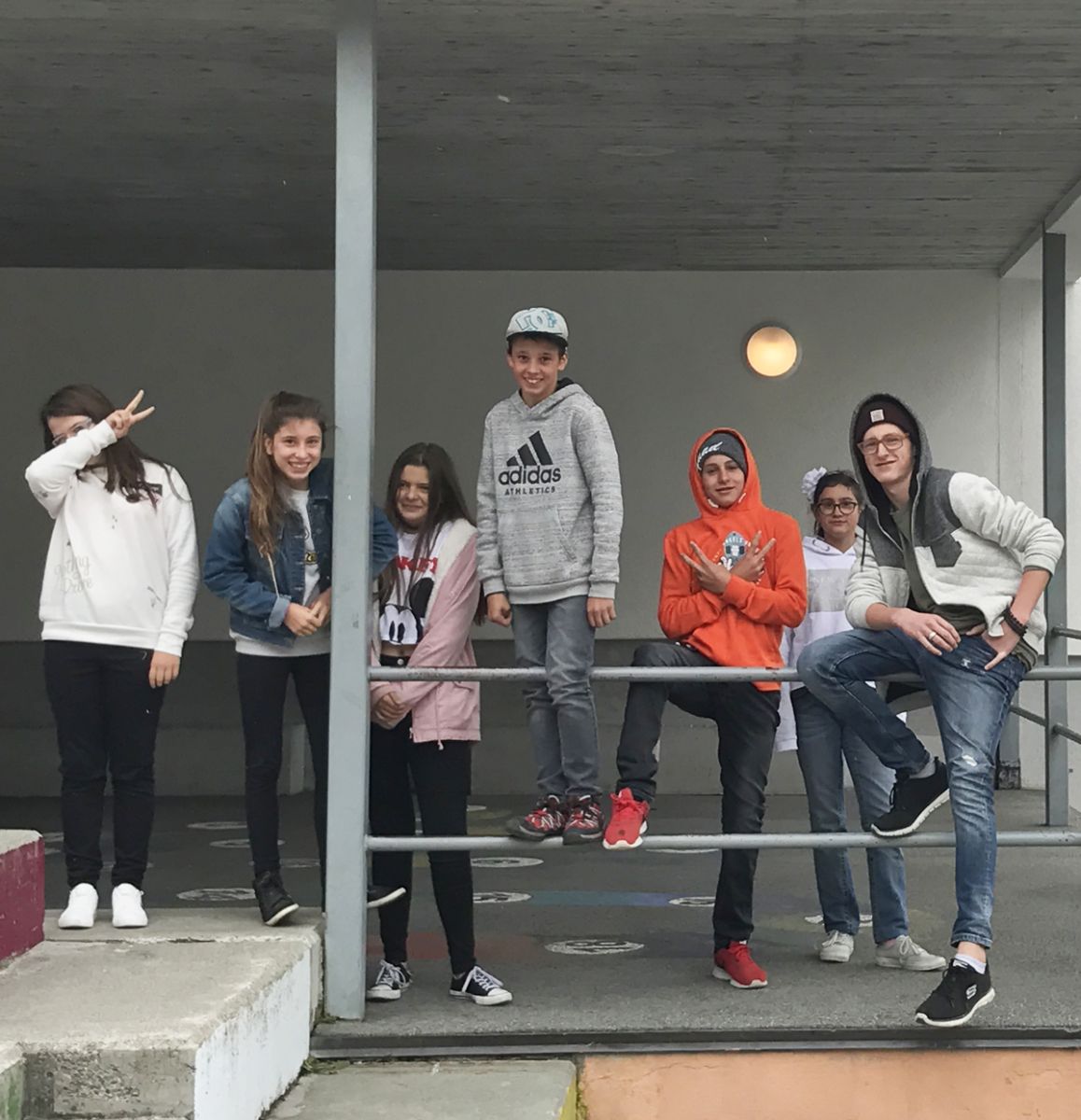 Scolaras e’ls scolars da la prüma reela da la scoula da Samedan faun cun lur istorgias visita a l’an futur 2021. fotografia: Romana Ganzoni