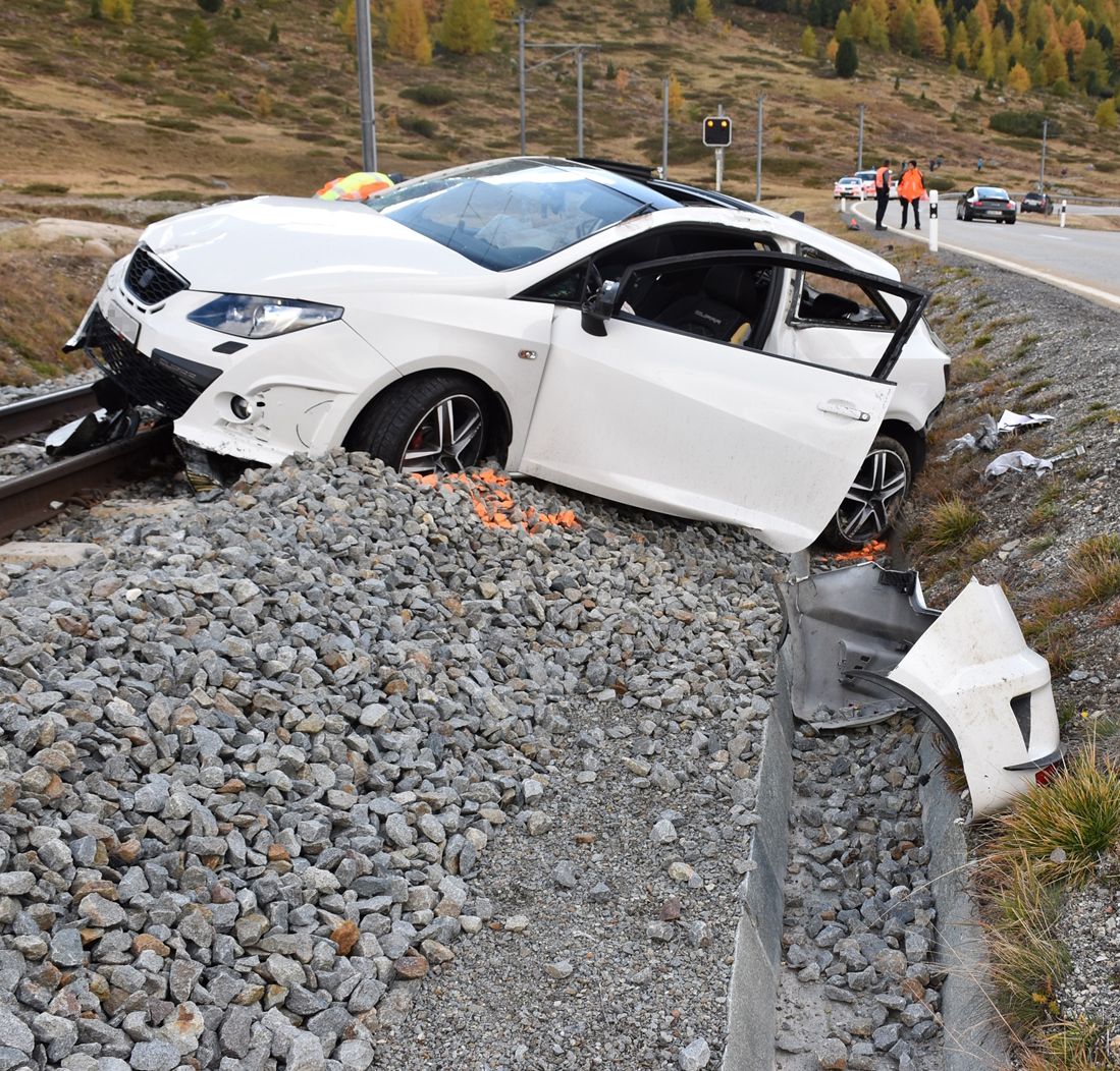 Ein Autofahrer ist am Sonntagnachmittag bei Diavolezza über die Strasse hinaus auf das Bahntrasse der Rhätischen Bahn (RhB) geraten. Zwei Personen wurden leicht verletzt.