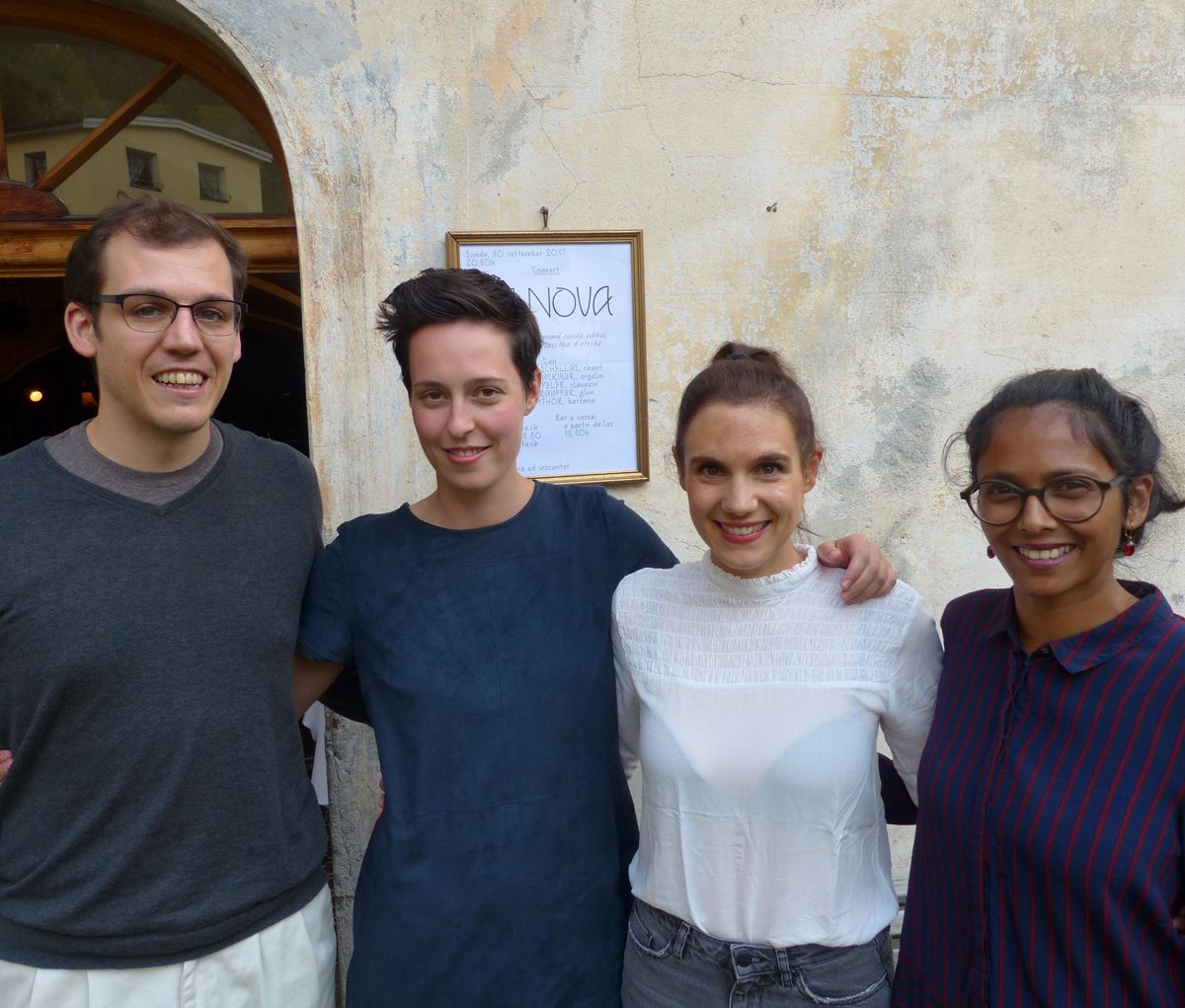 La nouva suprastanza da la Vouta cun Joannes Bernard Campell (da schnestra), Vanja Hutter, Anna Serarda Campell e Gianna Olinda Cadonau. Sülla fotografia manca Anna Tina Casanova (fotografia: Flurin Andry).