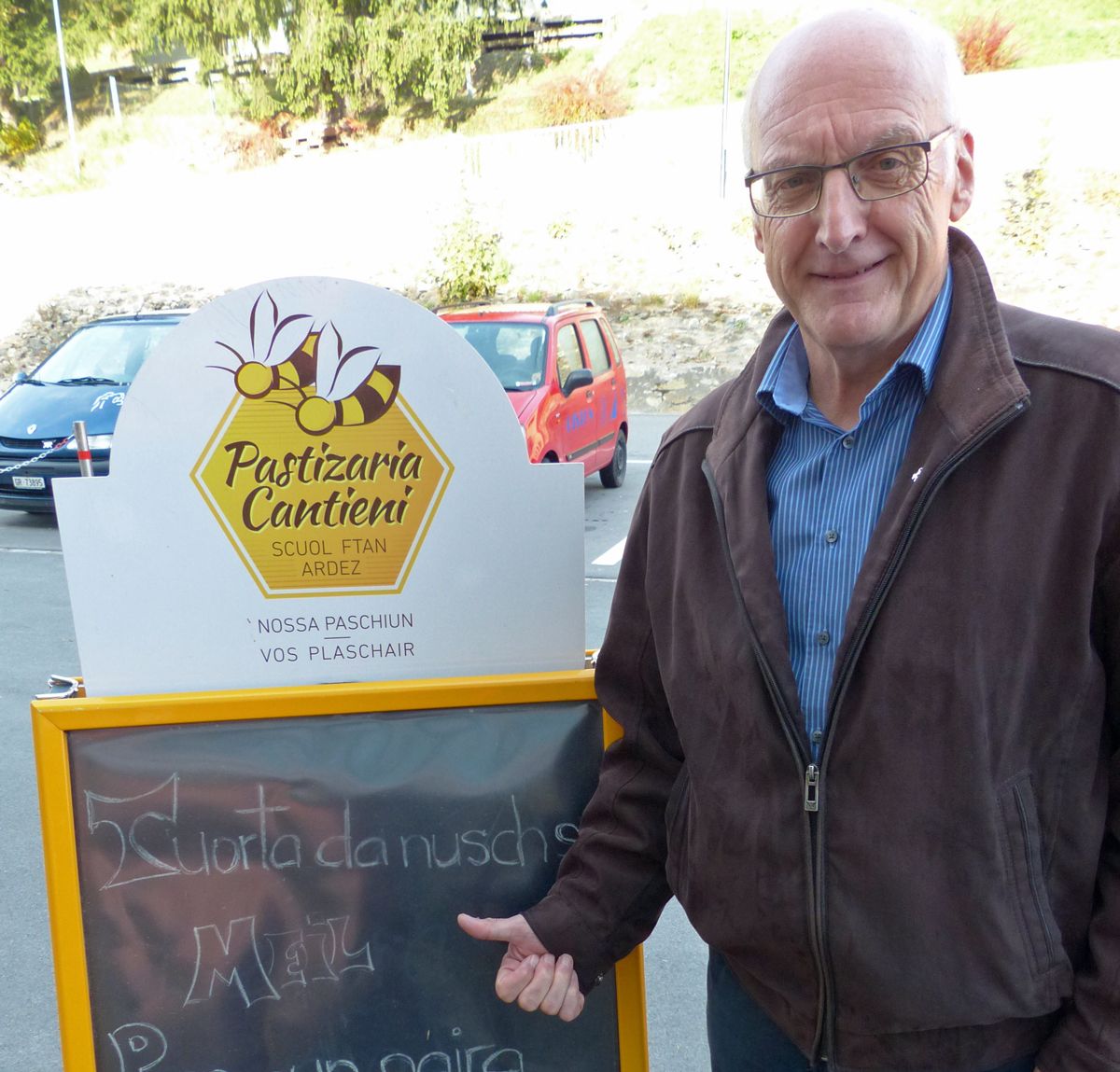 Mario Pult, promotur regiunal da la Lia Rumantscha, ha plaschair sch’el vezza cha’l rumantsch es preschaint i’ls cumüns (fotografia: Flurin Andry).