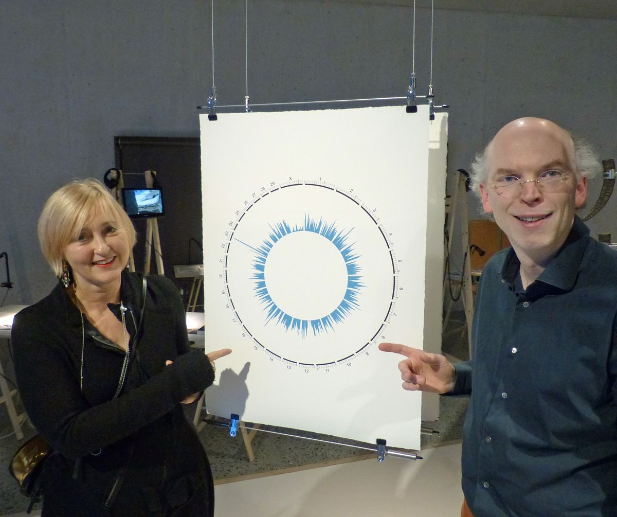 La curatura Irène Hediger e seis collega Lukas Keller cul purtret dad Edward Monovich chi preschainta da maniera estetica la multifarietà genetica dals capricorns (fotografia: Flurin Andry).