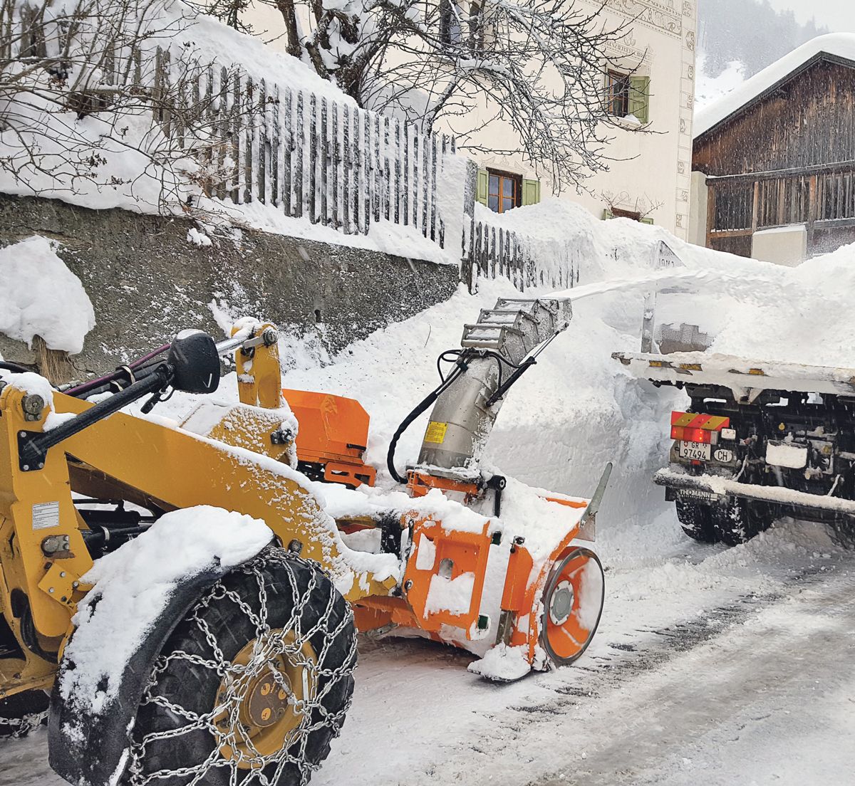 Cun schlavazzuns e camiuns vegnan rumidas las naiveras i’l cumün da Scuol. (fotografia: Uffizi da fabrica Scuol)