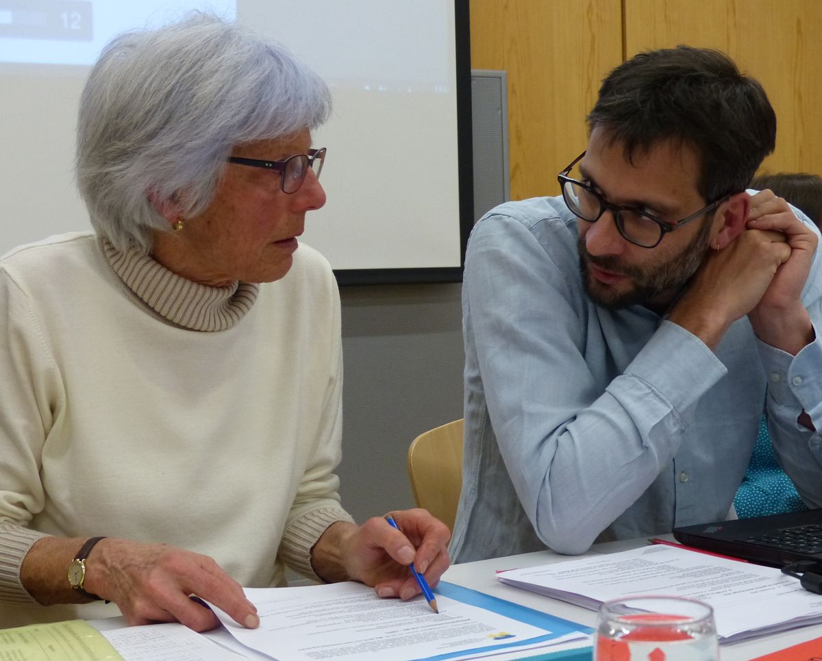 La presidenta Ursina Mengiardi in discussiun cul chaschier Curdin Müller (fotografia: Flurin Andry).