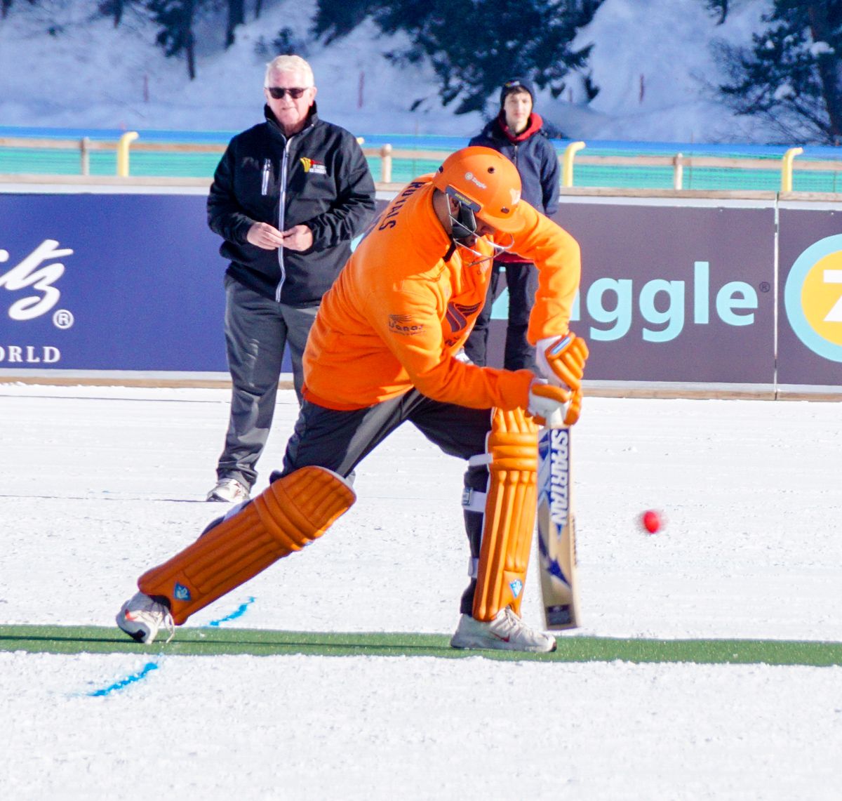Die «Royals» gewinnen in St. Moritz das erste Ice Cricket auf Schnee. Foto: Jon Duschletta