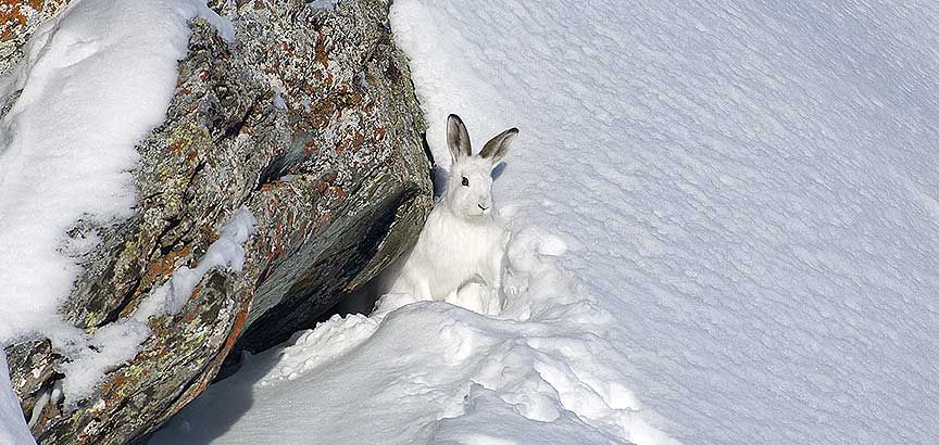 Dies ist allerdings nicht das einzige Problem der Schneehasen: Durch die frühere Schneeschmelze wechselt auch die Fellfarbe der Schneehasen früher. Die Folge davon ist, dass der Schneehase sich weniger gut tarnen kann und so zu leichterer Beute ...
