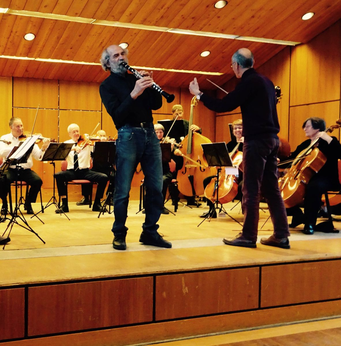Solist Domenic Janett, Dirigent Gyula Petendi und der Orchesterverein Engadin