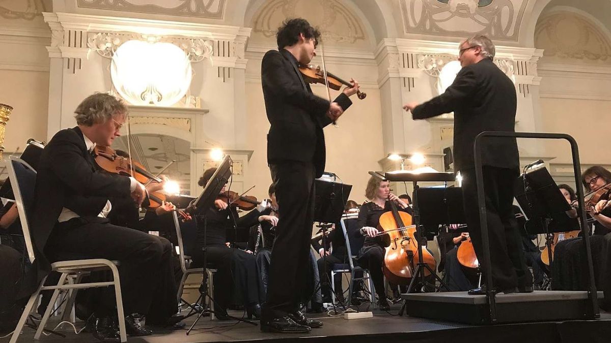 Behände bahnt sich ein junger Mann mit einer Geige in der Hand den Weg durchs Orchester nach vorne. Kaum setzt er diese an, werden er und sein Instrument eins. Nach wenigen Tönen zieht er das Publikum in seinen Bann, so auch das Orchester. ...